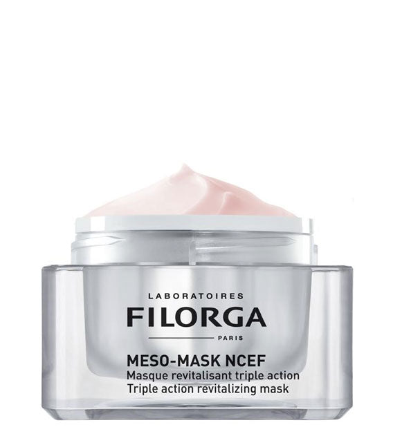 Inspirada en las mesoinyecciones, MESO-MASK NCEF ofrece un triple beneficio de acción con una mezcla precisa de ingredientes activos. El PHA (2% gluconolactona) exfolia suavemente, eliminando las células muertas para mejorar la luminosidad mientras reduce las líneas finas y las arrugas. La niacinamida (4%) fortalece la barrera de la piel, ilumina las manchas oscuras y refina la textura de la piel para una mejor protección contra los factores estresantes ambientales. El ácido hialurónico hidrata intensamente al retener el agua en el núcleo de la piel. El complejo NCEF único, desarrollado por FILORGA, estimula la revitalización celular, dejando la piel más suave, más luminosa y más tersa.